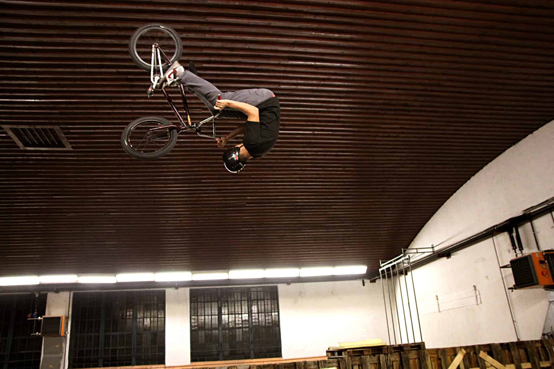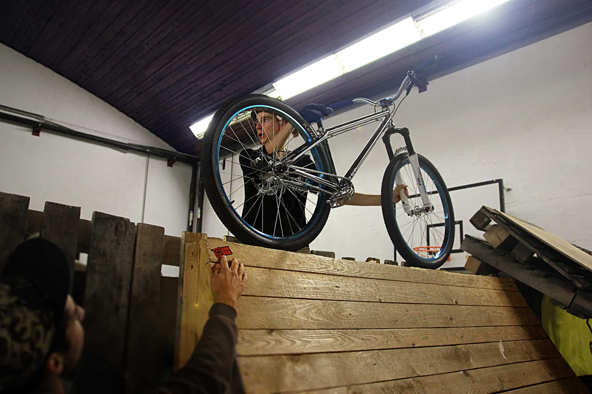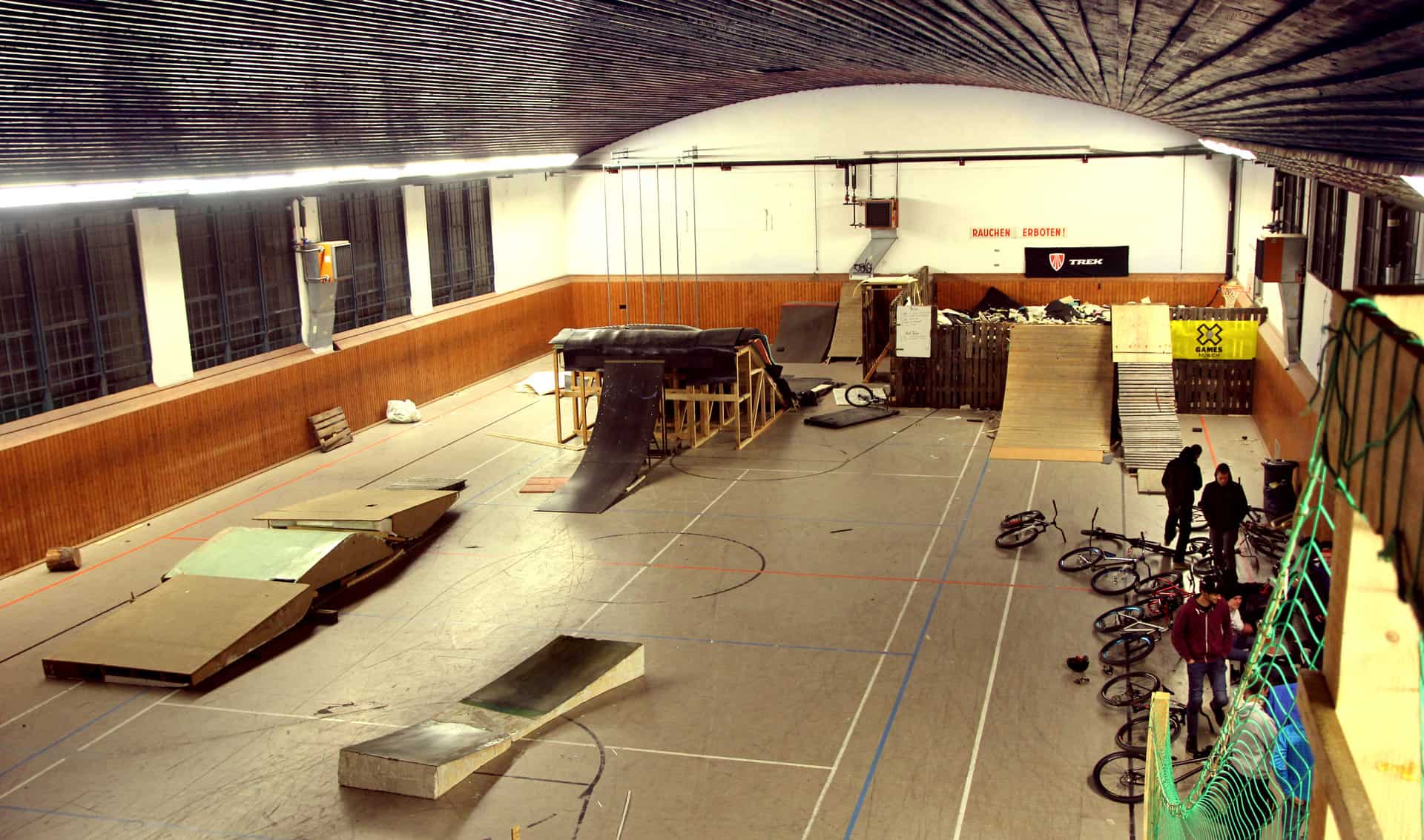 Keďže jazdiť sa nedalo tak sme posadali do dodávky a vybrali sme sa do Brannenburgu, kde majú dirťáci halu v starých kasárňach ktorá predtým slúžila ako športová hala. Hala bola veľká, ale nachádzal sa tu len jeden foampit s masívnym rozbehom a resi-dirt, ktoré si chalani postavili sami na zimné obdobie a pár punkových prekážok.  Takže prekážky nič moc, ale na trénovanie super. Vstupné sme platili 5€ ( najprv od nás chceli 10)!