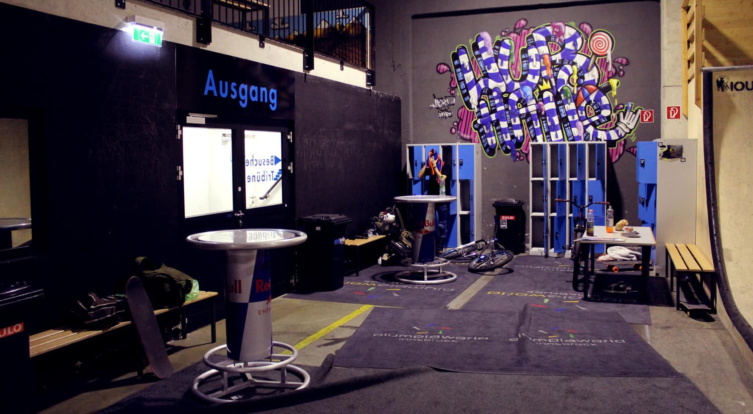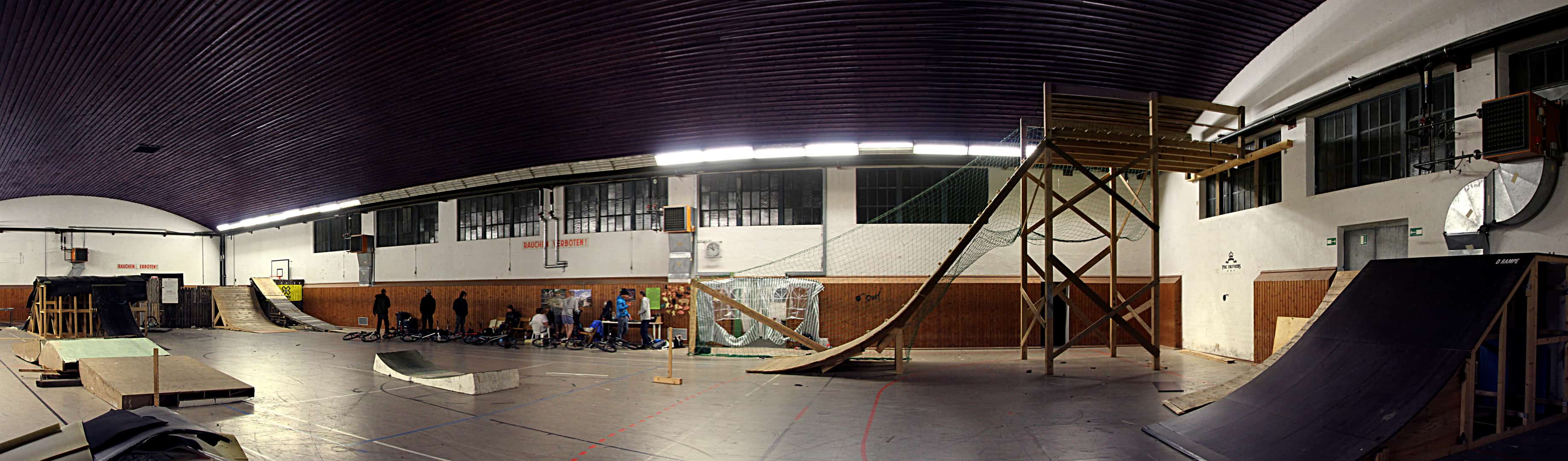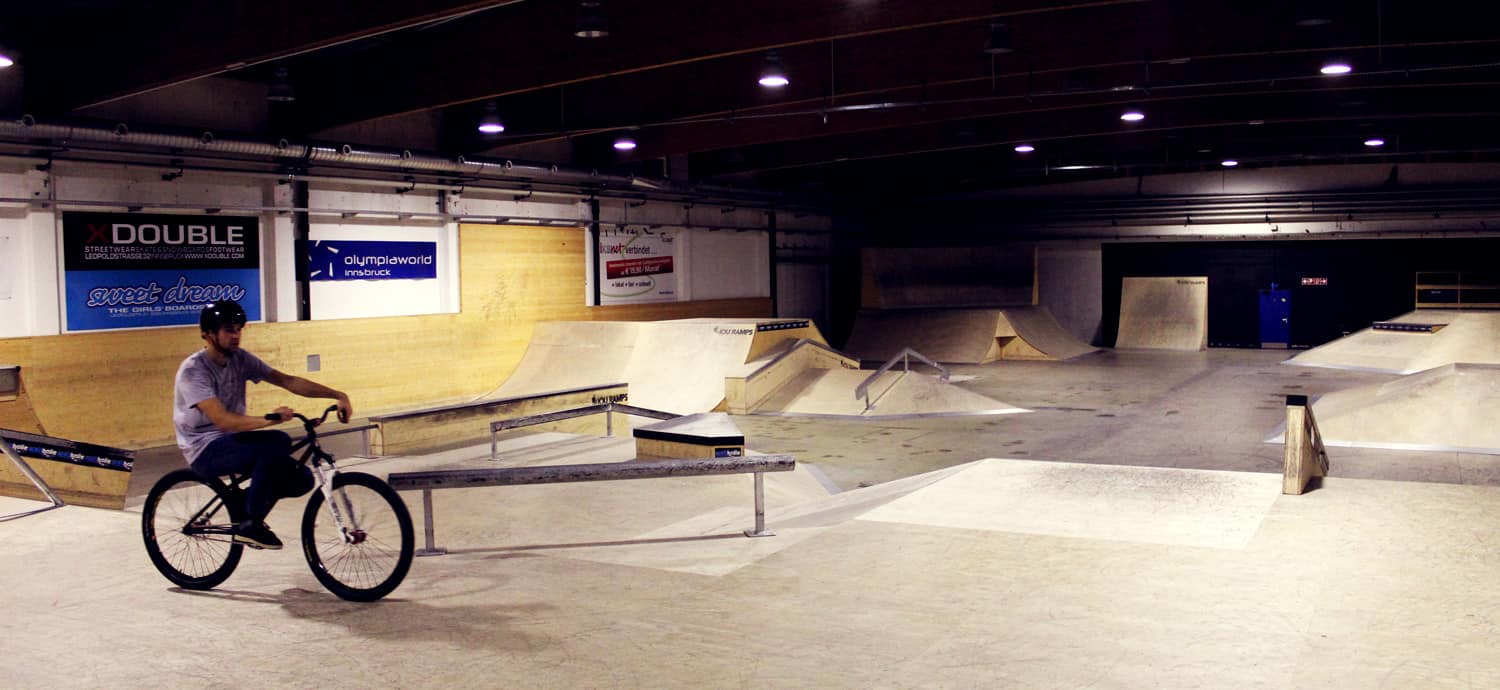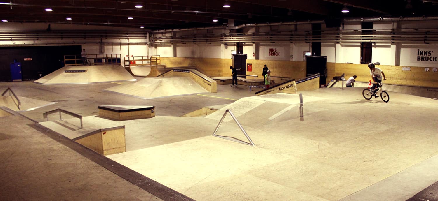 Hala v Insbrucku je naozaj veľká s množstvom prekážok. Hlavná časť bola s menšími a street prekážkami určenými hlavne pre skate, bola tu aj parková časť s funboxom a step-upom a veľký bazén. Hala bola vykurovaná, bolo tu WC, zamykateľné skrinky na veci, automaty s jedlom a vždy prítomný správca, ktorý mal vlastnú miestnosť odkiaľ vyberal vstupné prijateľných 2,50€. Luxus !